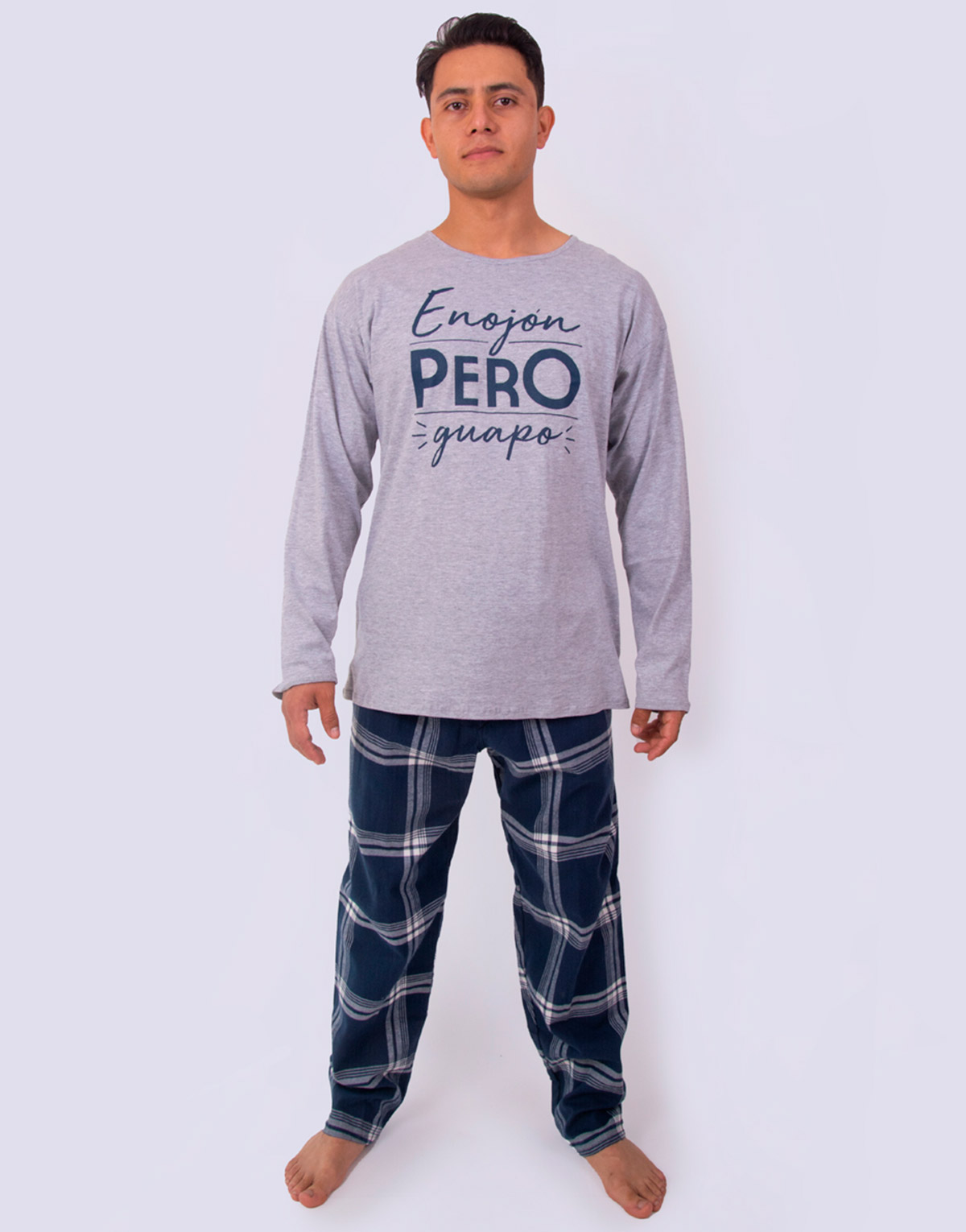 Pijama para hombre de invierno modelo JHI0265 “ENOJON PERO GUAPO” – Pantalón en franela y con jareta ajustable. Playera manga larga cuello redondo de algodón peinado.