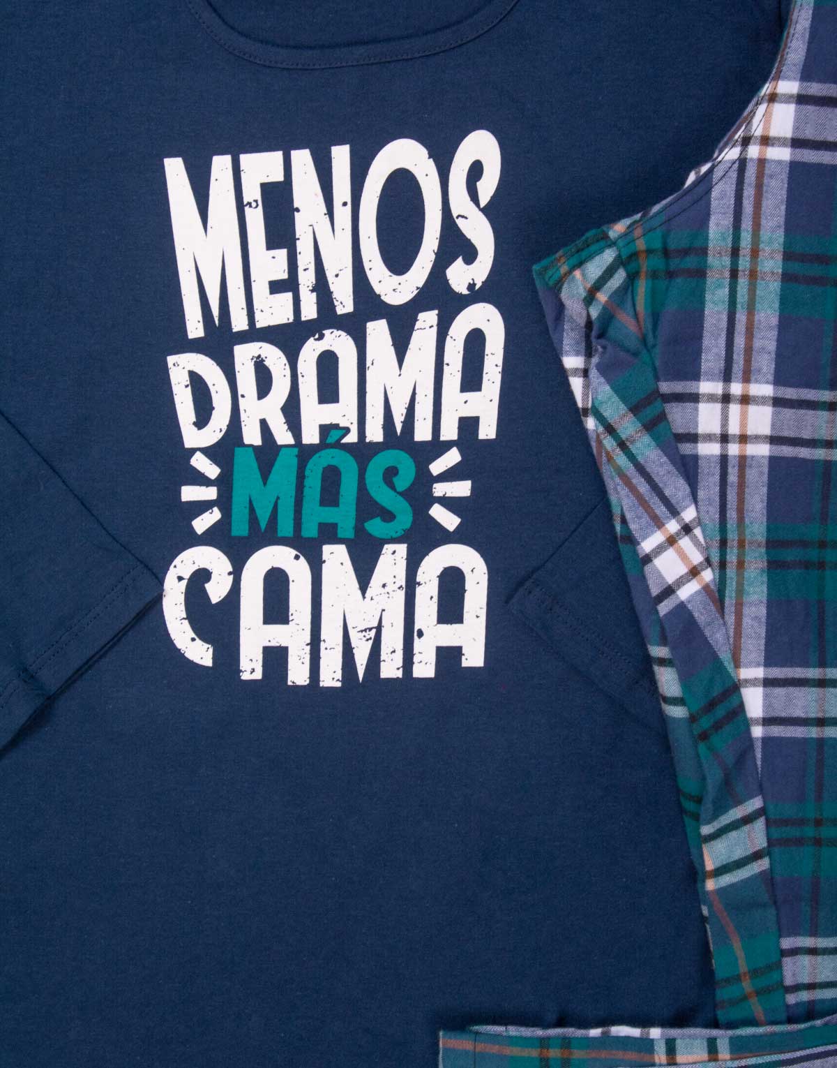 Pijama mujer invierno modelo JMI0327 “MENOS DRAMA MAS CAMA” con playera manga larga y pantalón en franela, jareta en cintura para ajustar, elástico en parte posterior, corte amplio y cómodo.