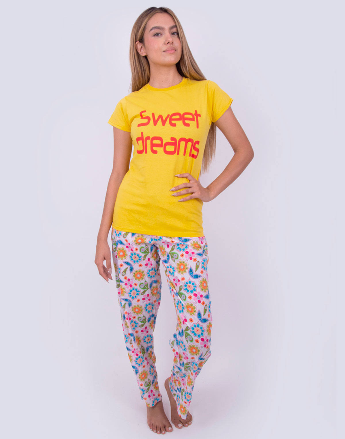 pijama para mujer larga verano modelo jml0084 playera manga corta con impresión “sweet dreams”, fabricada con fresca tela algodón, pantalón en tejido circular (estira)
